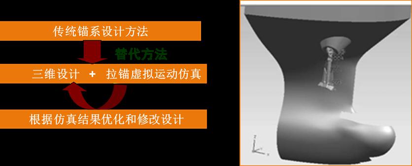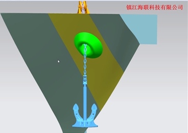 經過與國內行業(yè)權威設計院的合作過,并將該技術應用于船舶建造中,對錨鏈筒、錨臺、錨唇、錨穴、錨、錨鏈、錨機、止鏈器、導鏈滾輪、船體等進行三維設計和自動建模,實現了三維錨系計,保證了錨系設計中空間位置定位的準確性,并通過三維軟件導出二維CAD圖紙,扭轉了一直以來二維圖紙與船廠錨系施工脫節(jié)的局面,極大提高了錨系設計的效率。除此之外,利用軟件的后期的仿真功能,模擬并預報收錨過程的動態(tài)效果并給出調整方案。
